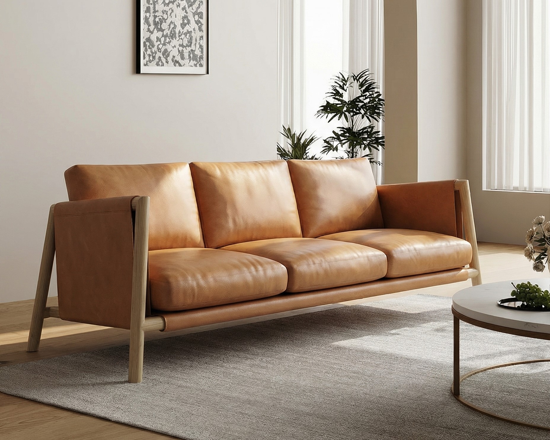 The meticulous blend of oil-finished Light Oak and natural leather secures the ARES SOFA’s place as a cornerstone of high-end interior design, offering unrivaled luxury and enduring style.