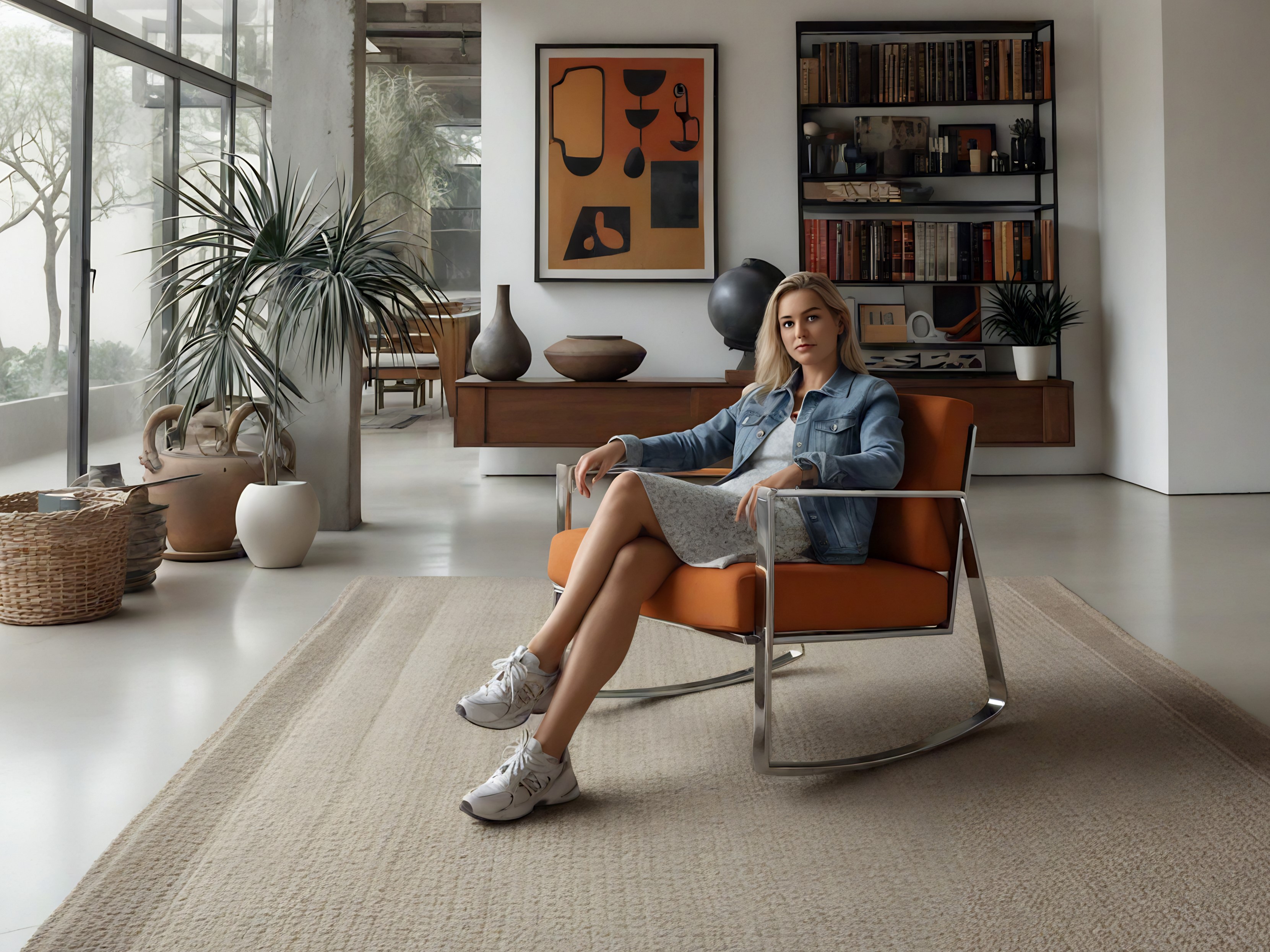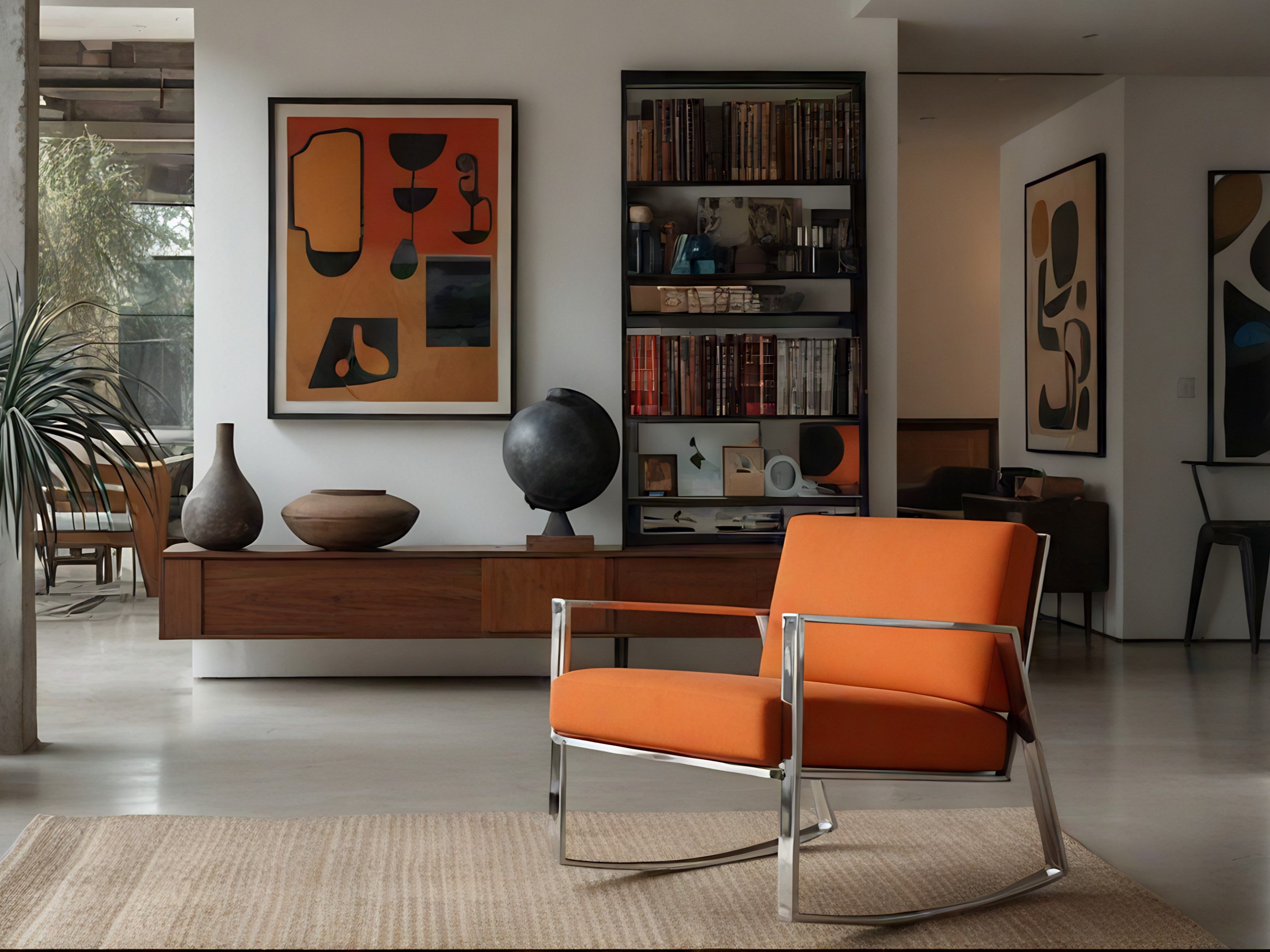 Experience the perfect blend of style and comfort with our Cinar Rocking Chair. This architectural masterpiece features a striking polished chrome frame that carves clean, geometric lines, creating a bold, contemporary statement. The vibrant burnt orange upholstery offers a plush, inviting seat that beautifully contrasts the cool metal.